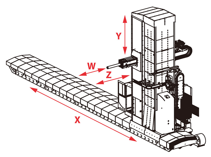 機(jī)床設(shè)計(jì)用于精密的鉆、鏜、銑削和螺紋加工等,適用于大型和重型的鑄鐵鑄鋼和鋼結(jié)構(gòu)等材質(zhì)的工件,工件的重量可達(dá)150噸。