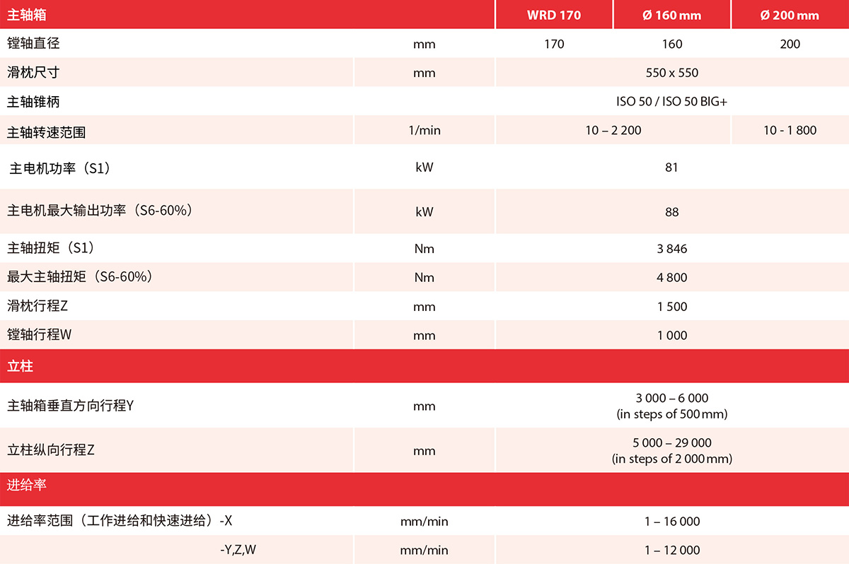 • 工作鏜軸的直徑為170mm