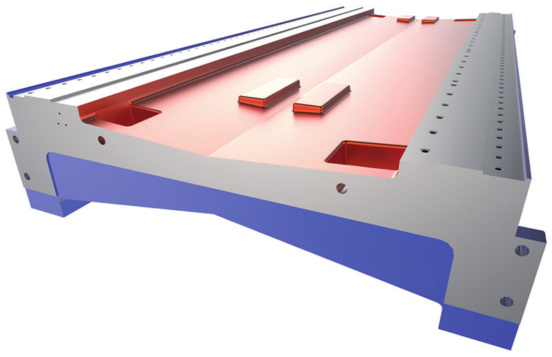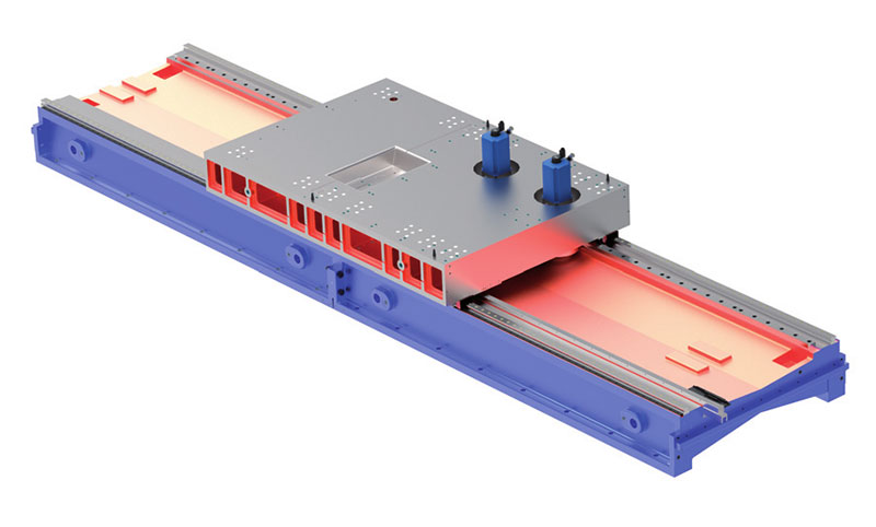 主要部分采用球墨鑄鐵鑄造,像其它部件一樣,滑枕裝配在L型溜板上,該單元可以對滑枕進(jìn)行自動實時的變形補(bǔ)償。