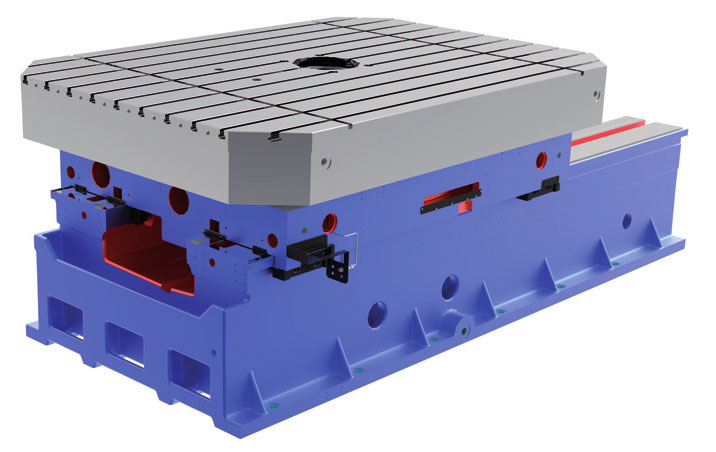回轉(zhuǎn)工作臺(tái) 工作臺(tái)配置一個(gè)圓形光柵尺,可以自動(dòng)定位,分度≥0.001度。 當(dāng)程序指定定位角度的時(shí)候,工作臺(tái)會(huì)被自動(dòng)液壓夾緊。 工作臺(tái)采用伺服電機(jī)驅(qū)動(dòng)雙小齒輪帶動(dòng)大齒圈的轉(zhuǎn)動(dòng)。 |